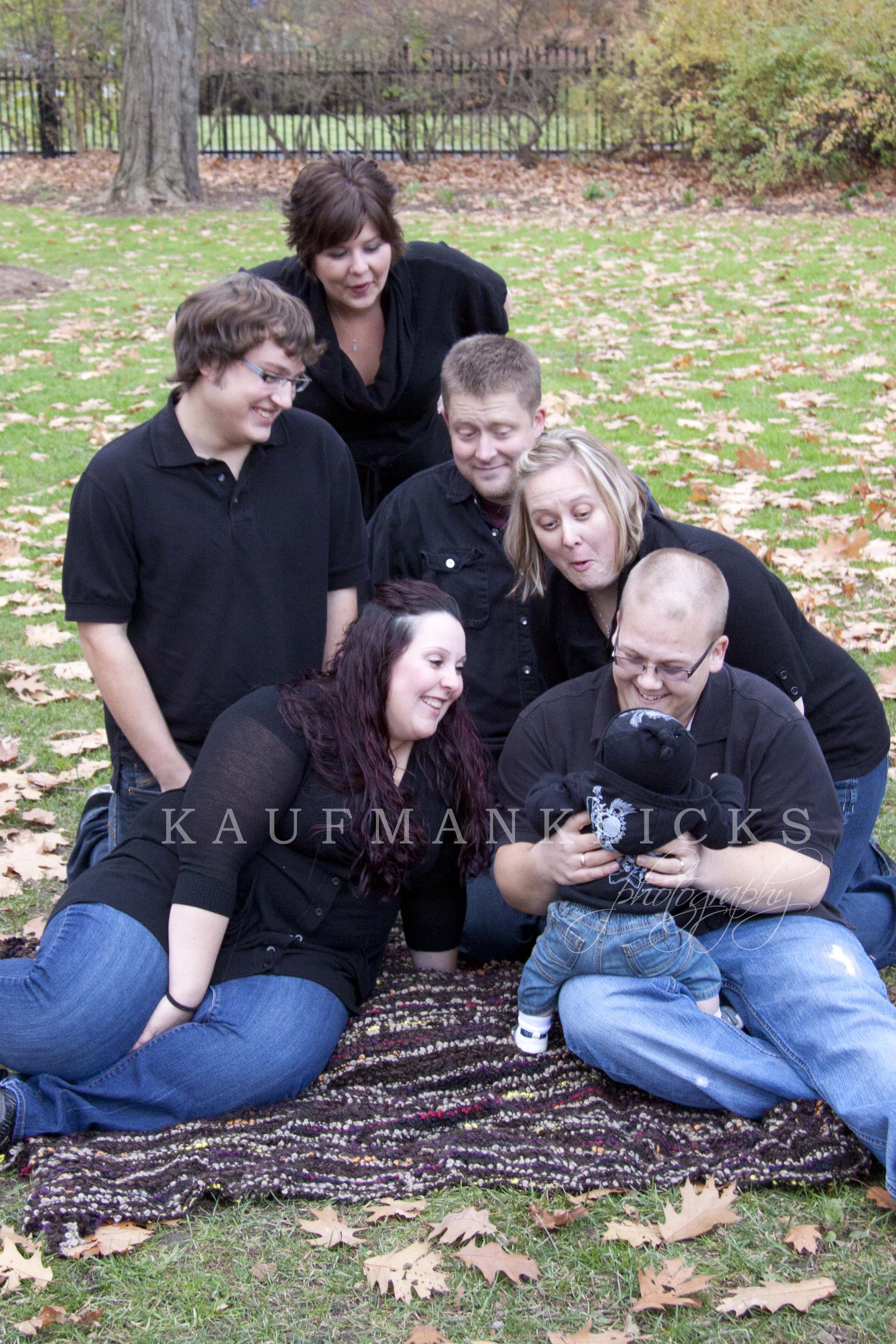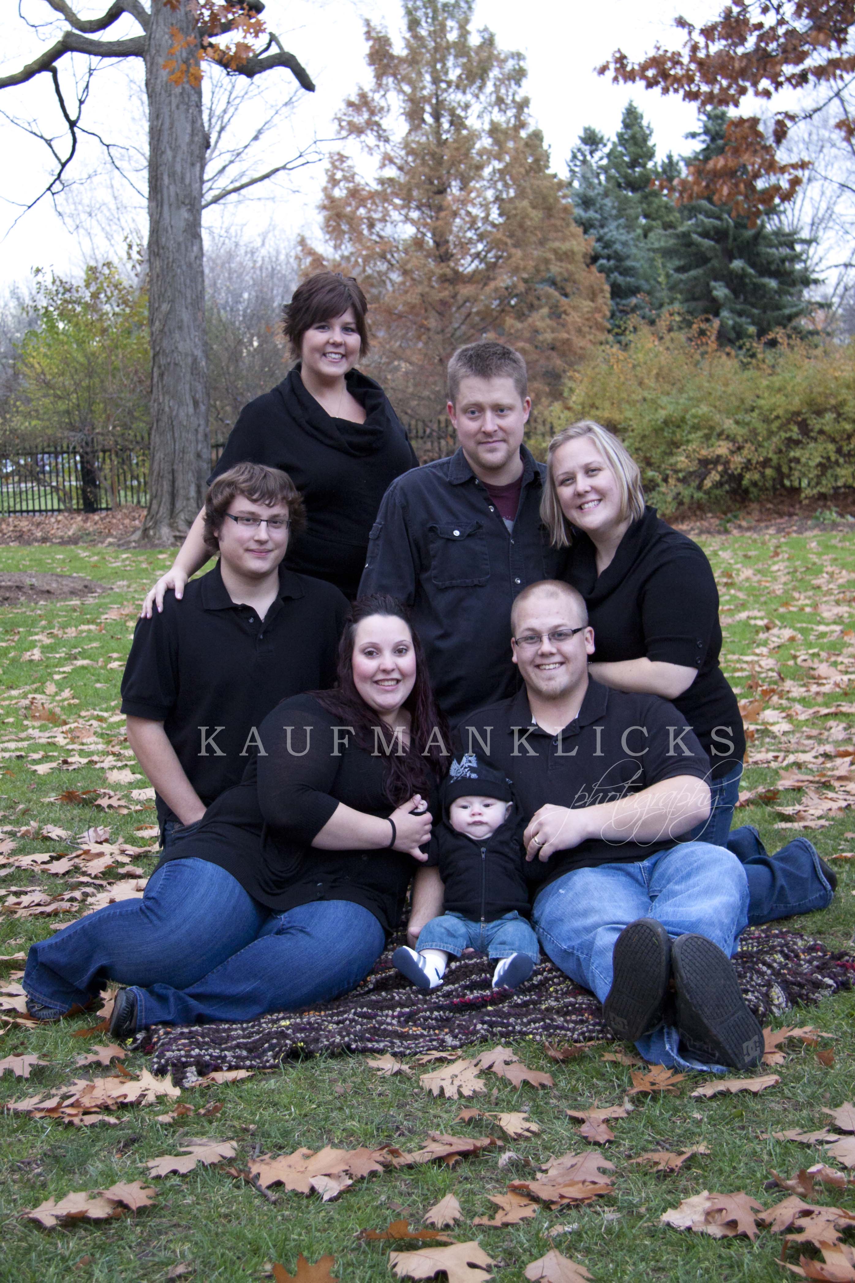 To warm up in between sessions we headed to McDonalds, not for very long just long enough to get warm, then were back to the park for the Belford family. Jenn, James and Laura (and their significant others – Steve, Amanda and Sean) were ready to go – even their pets were part of some photographs. We had a lot of fun and a lot of laughs. Some couples, individual families, baby, and a full group shot were done in the park. As lighting started to become an issue we snuck back to Jenn’s parents house and did some pictures in front of the fireplace like they used to do when they were children.